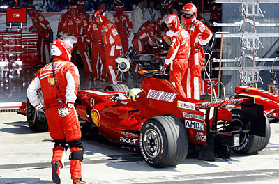 马萨在周日的比赛中从第三位起步,在刚发车时曾一度超越汉密尔顿抢到第二的位置,不过随后在第一个弯内被强行从外线超车的汉密尔顿碰到了前轮。在比赛进行到底9圈时,马萨就第一次进站了,当时怀疑是轮胎破了。不过,他在出站后仅仅跑了一圈便再次回到维修站,紧接着就因为后悬挂出问题而退出了。