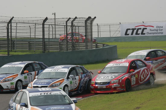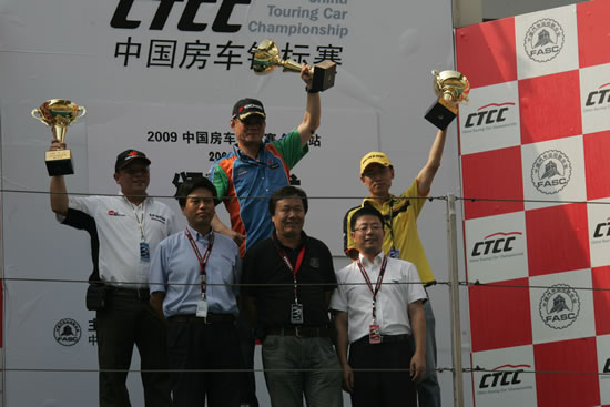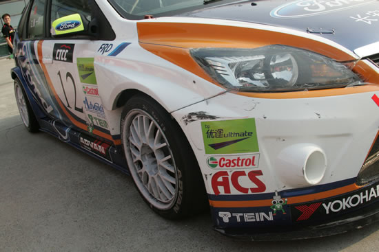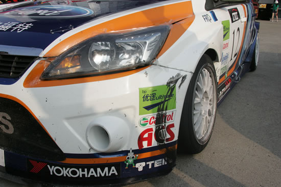 778车队和长安福特车队之间的“摩擦“还在进行中。在778车队的赛车发动机出现问题后,长安福特车队的江腾一已经追上对手,可是在卢氏兄弟的“前后夹击”下,非但没能超过前车,更是在几圈的不断“摩擦”中被后面落后5秒以上的华扬车队曾善玺超过。江腾一赛后指引记者看他的赛车,赛车前部的左右和后部的左侧都有明显的“碰擦痕迹”。江腾一很郁闷:本来以为前三没问题了,结果却被当了“夹心饼”!曾善玺在赛后新闻发布会上表示,在前车的“纠缠下”他很好地把握了机会,最终拿下这个幸运的第三。