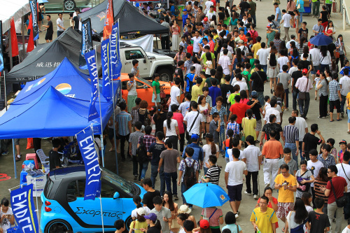 从另一个角度来看泛珠,你会发现这个比赛的商业氛围已经渗透到了相关的每一个角落。外场的商品展示、销售区,给车迷带来吃穿用行以及汽车、赛车相关的各种产品;车迷活动、互动区域也是热闹非凡,各个品牌推广和互动活动紧密结合,厂商车迷各取所需;内场车队嘉宾休息区、VIP活动区也是人头涌动,热闹程度不下F1的围场俱乐部。