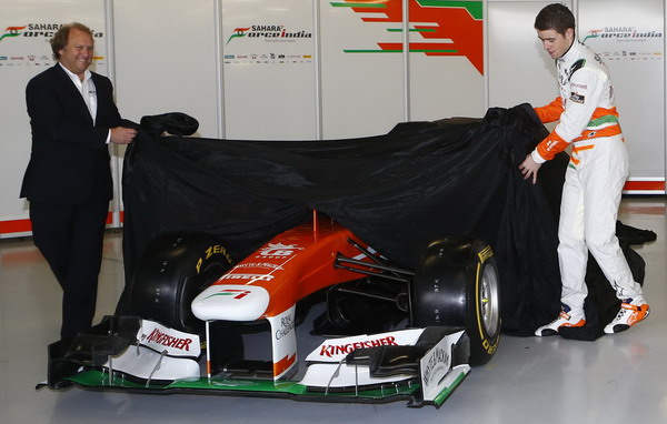 北京时间2月1日傍晚,印度力量在英国银石赛道为2013赛车VJM06揭幕,由于车队迟迟没有确定第二车手人选,只有保罗-迪-雷斯塔独自一人与新车合影。