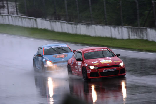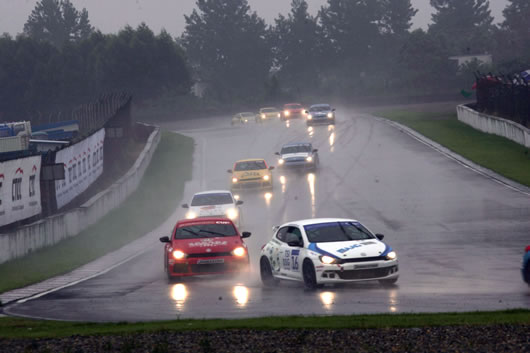 8月1日中午,尚酷杯成都站第6回合赛事在成都金港赛车场举行。从发车开始比赛就在蒙蒙细雨中进行,比赛虽然有一些小的问题,但整体还是在安全的气氛中结束。来自北京的车手王建伟由于在比赛中和旁车发生碰撞,并最终撞上防护墙而退赛。