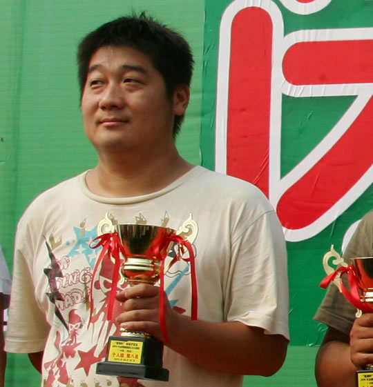 蒋其峰为夺得冠军的队友董亮祝贺。
